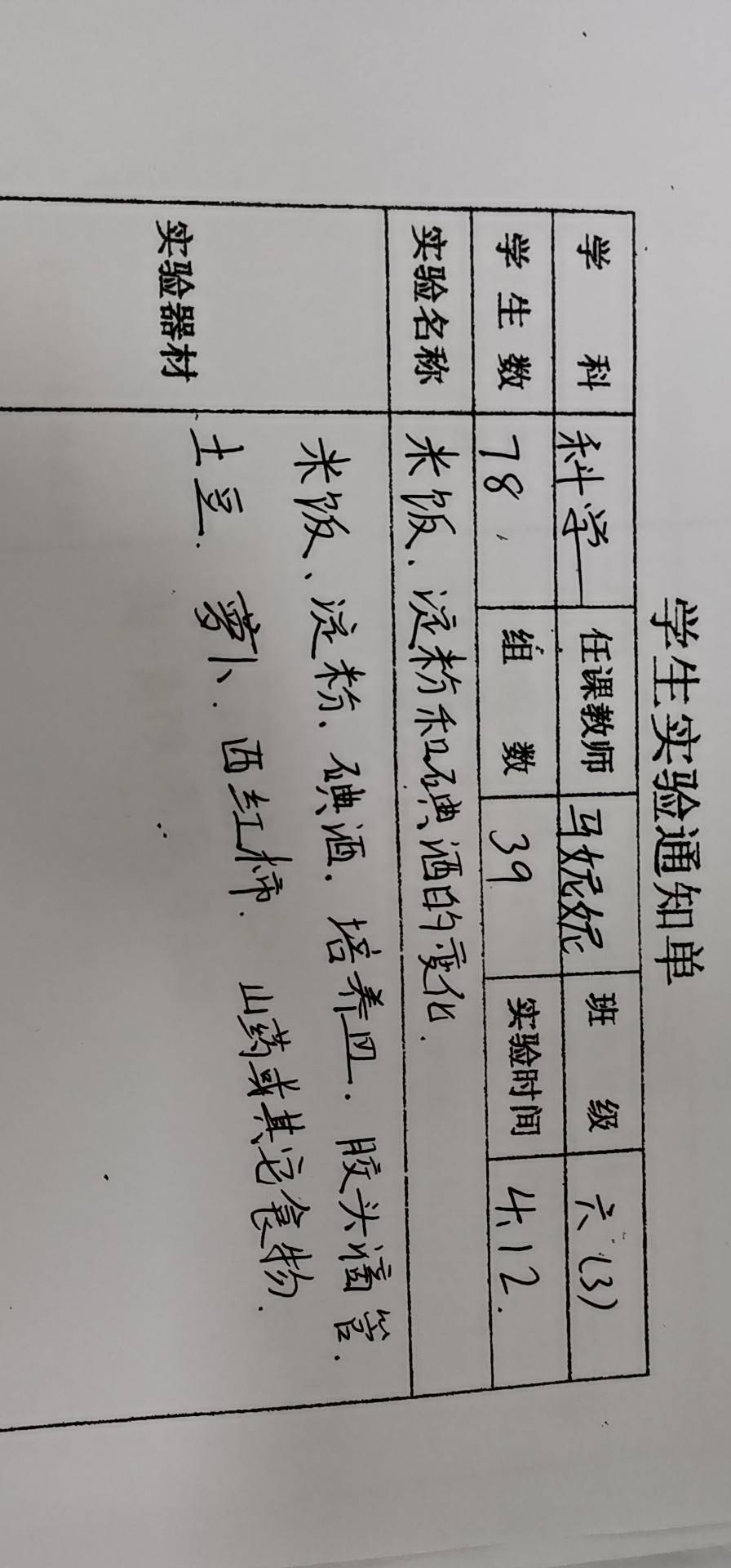 实验登记表