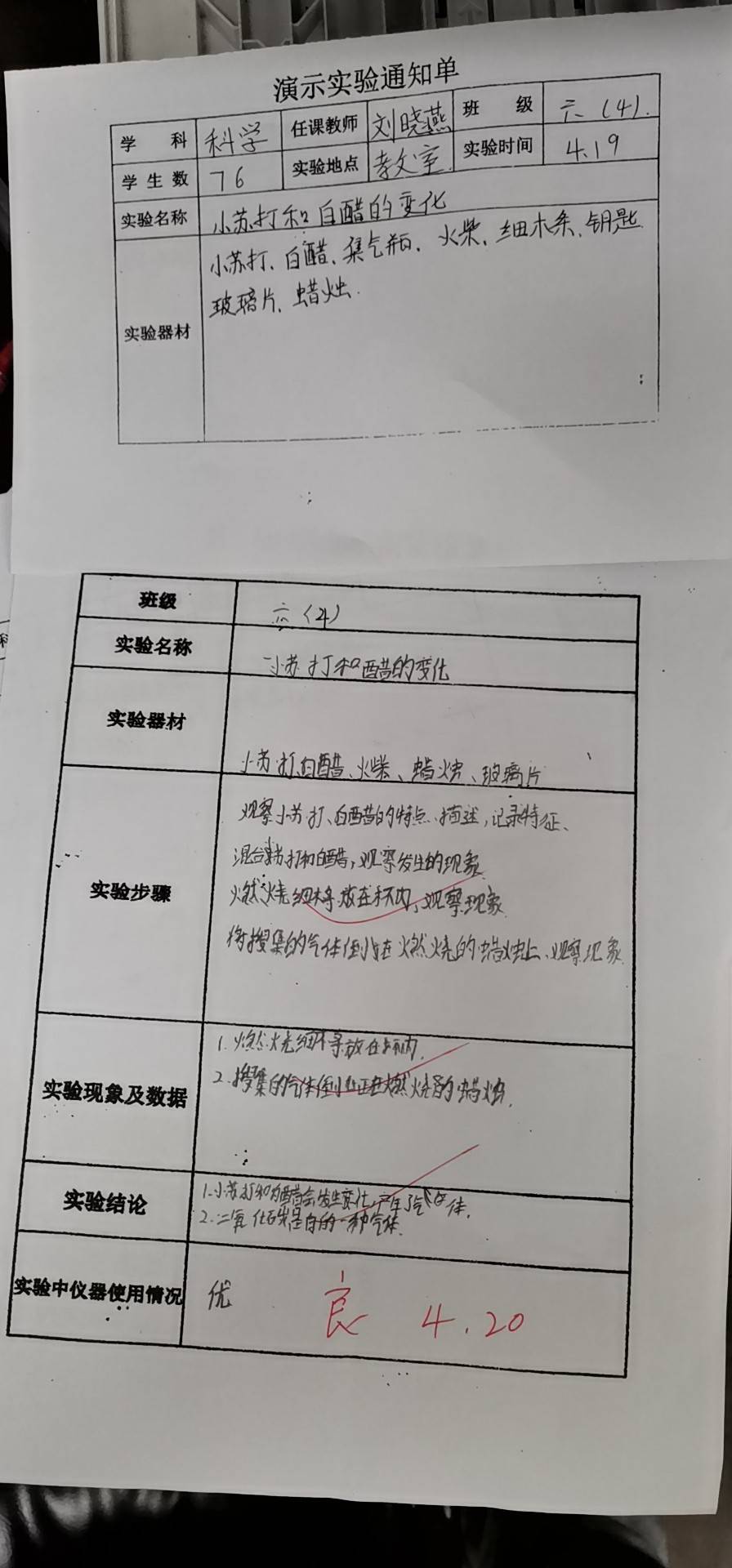 实验登记表