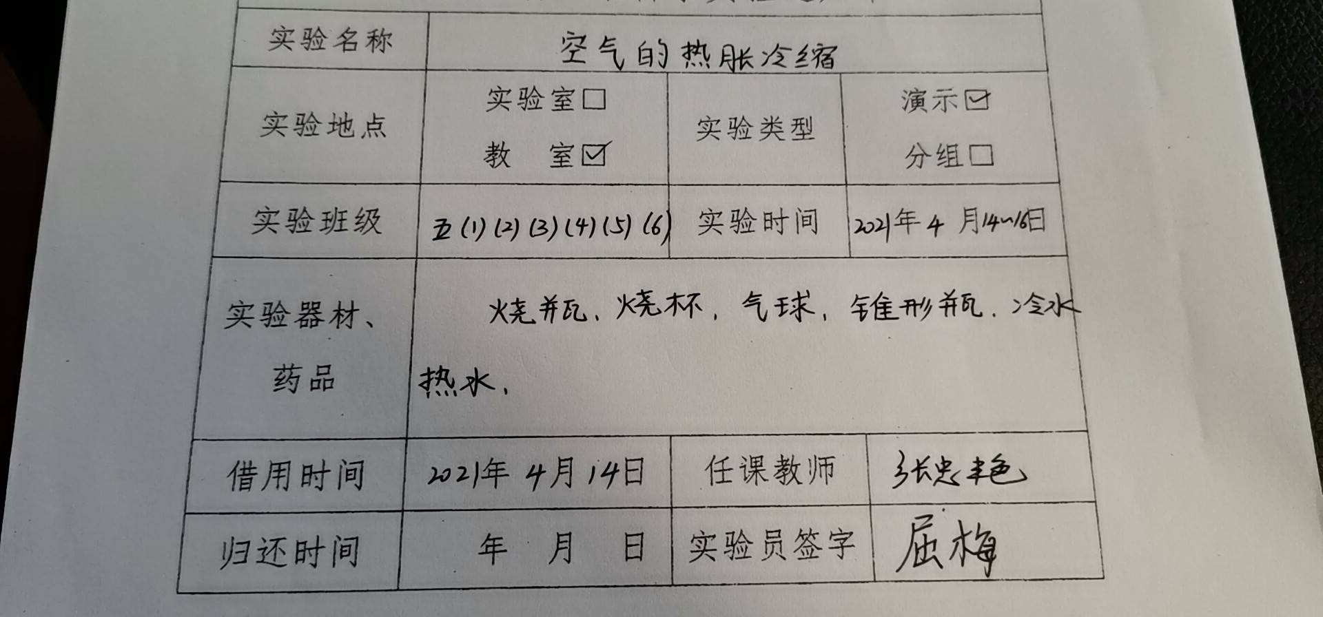 实验登记表