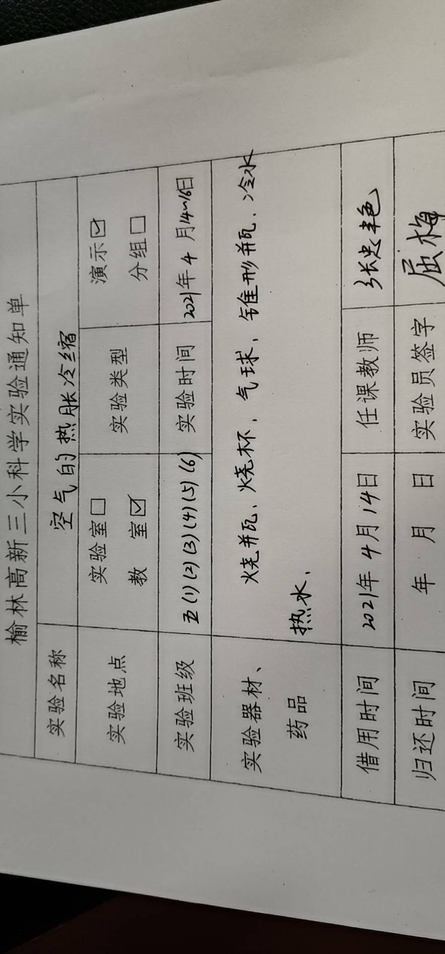 实验登记表