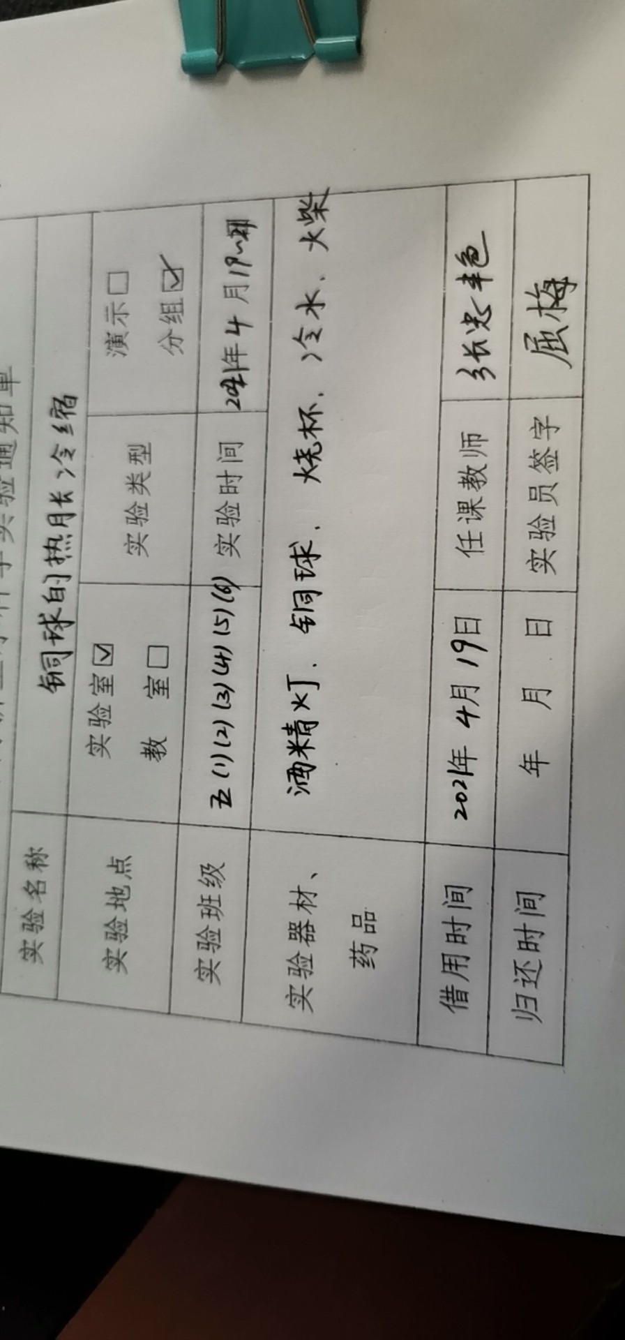 实验登记表