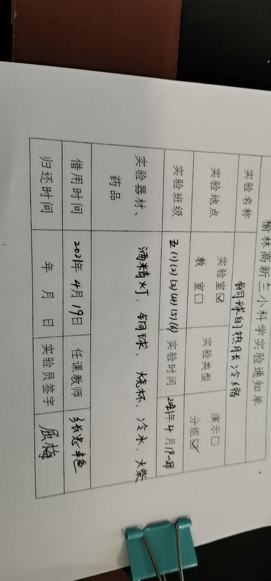 实验登记表