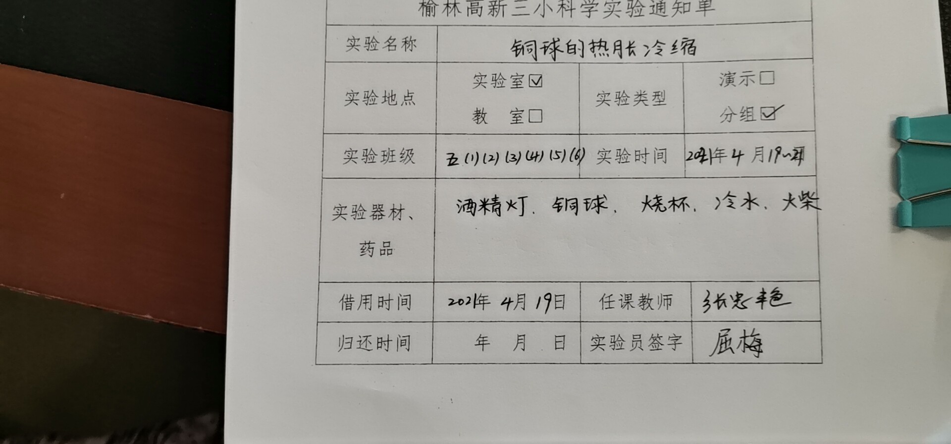 实验登记表
