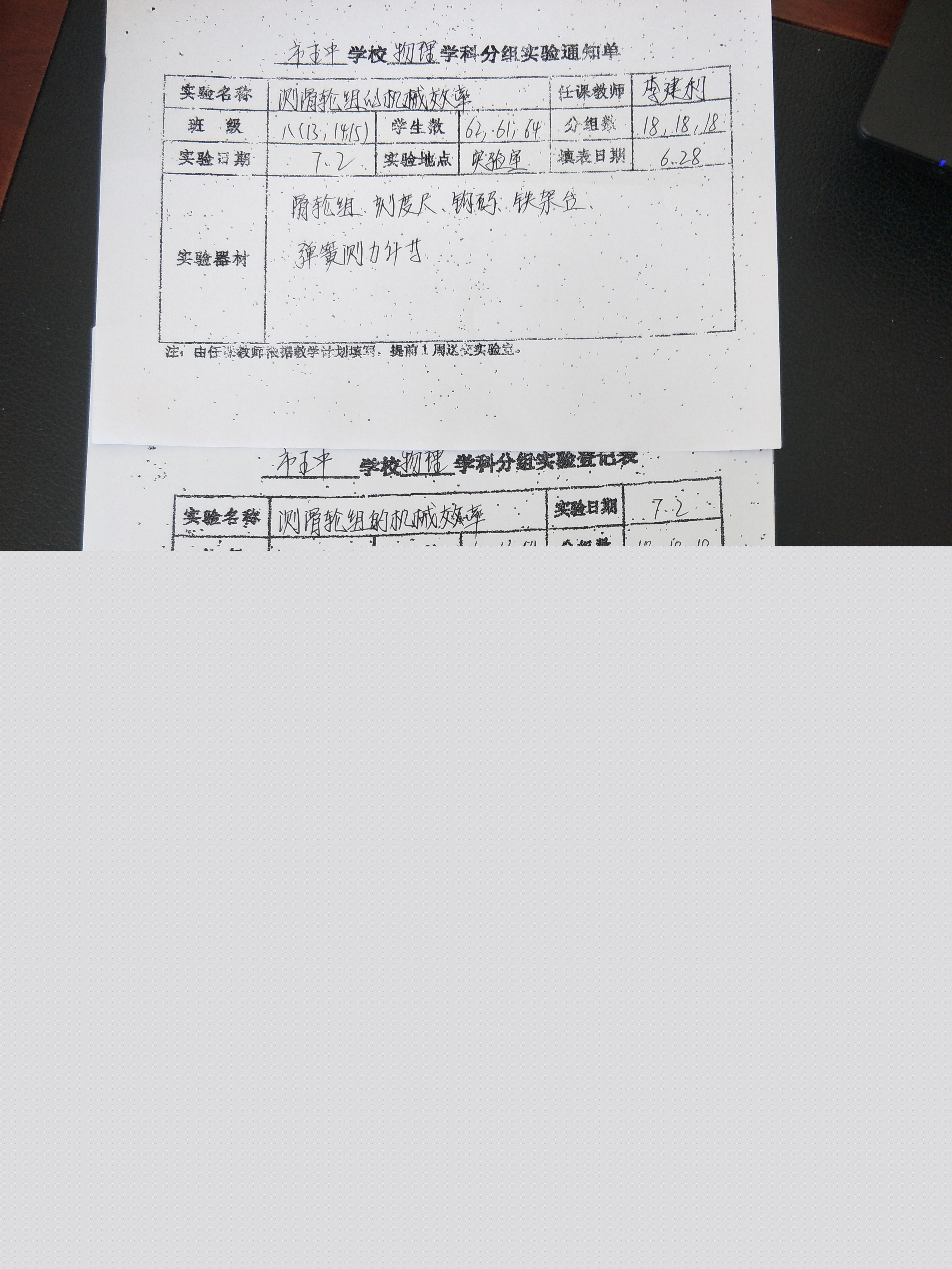 实验登记表