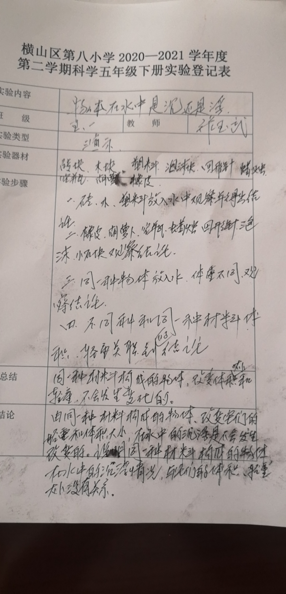 实验登记表