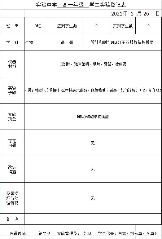 实验登记表