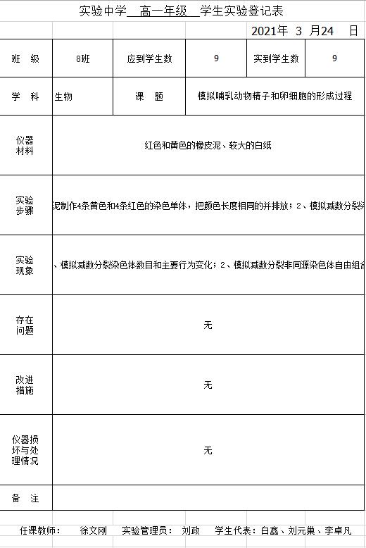 实验登记表