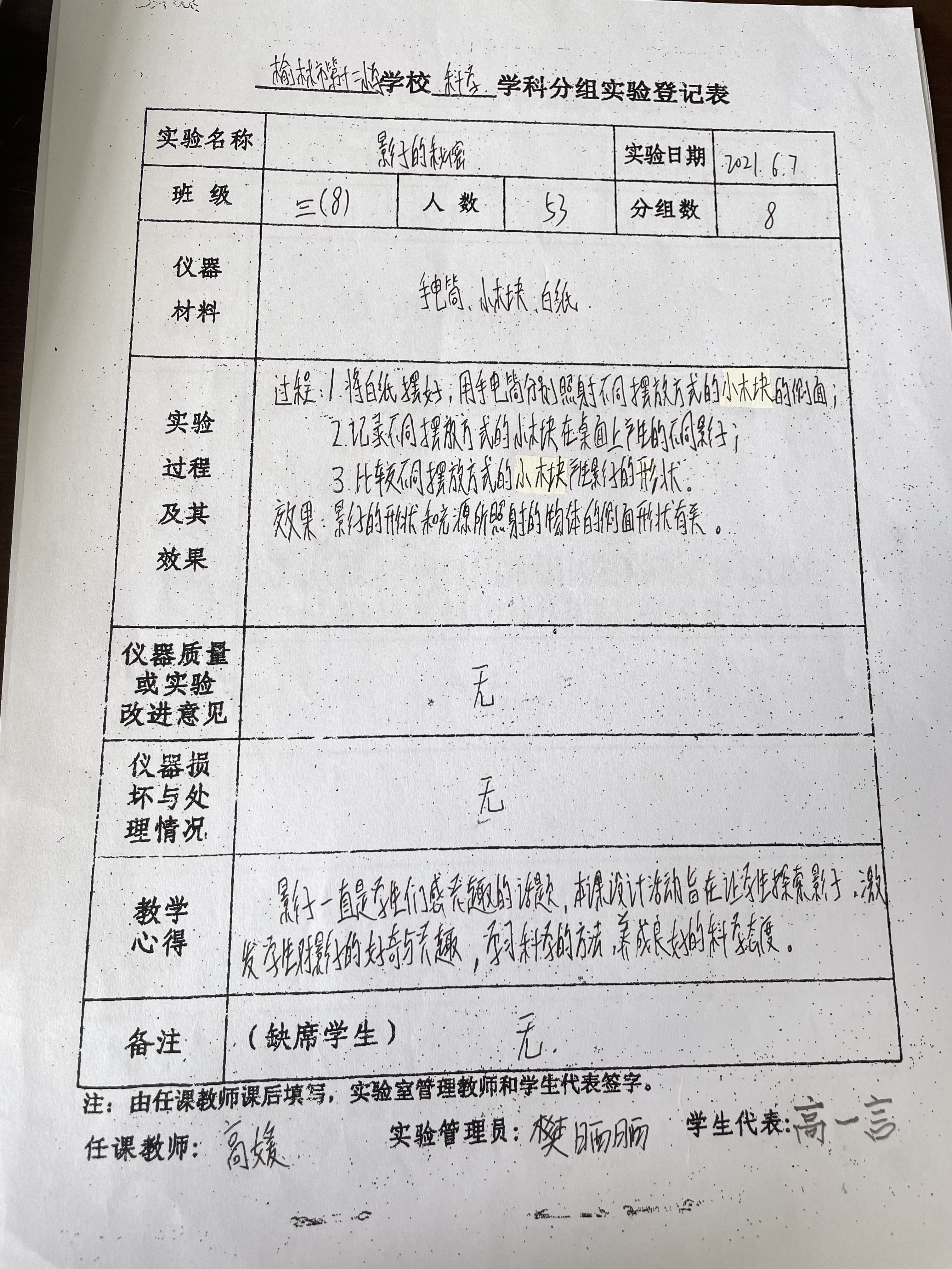 实验登记表