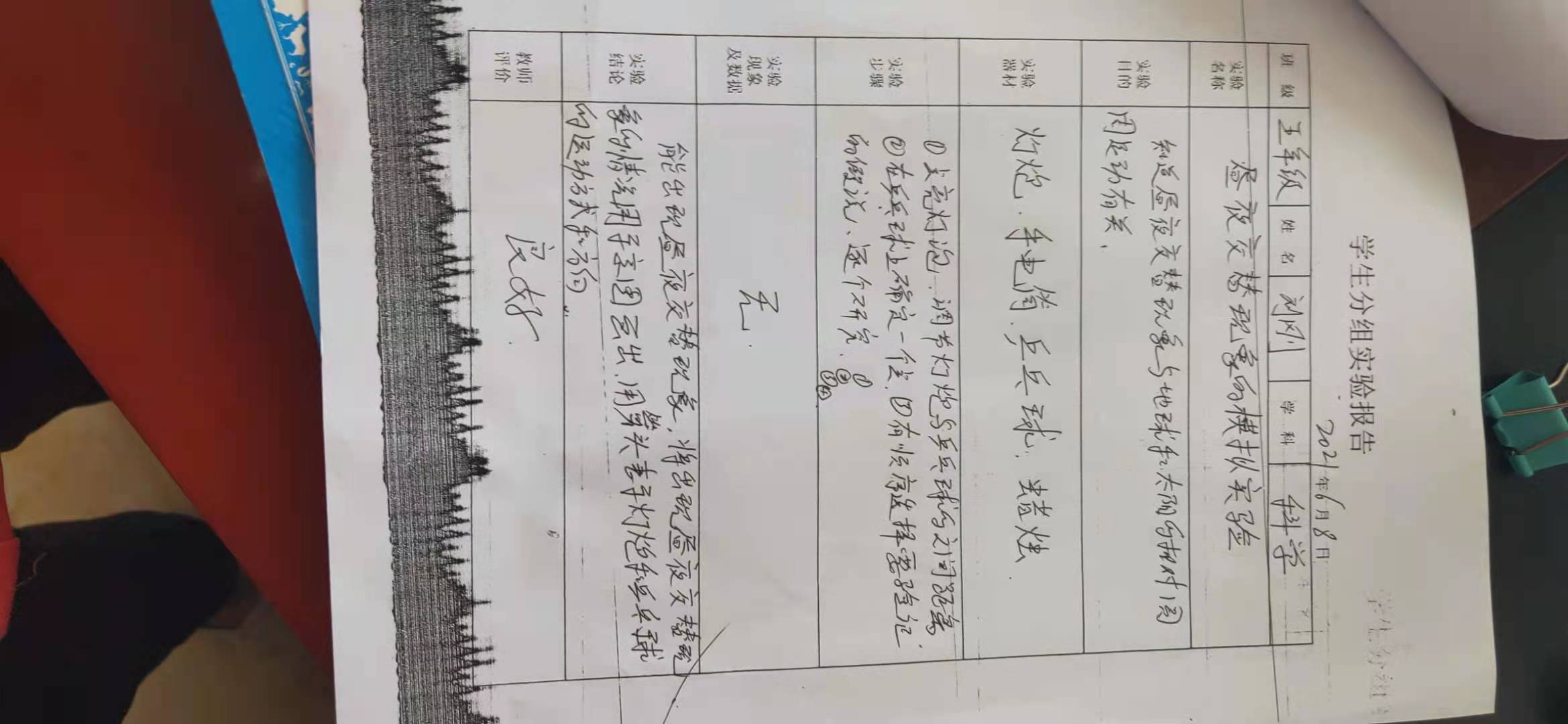 昼夜交替现象的模拟实验