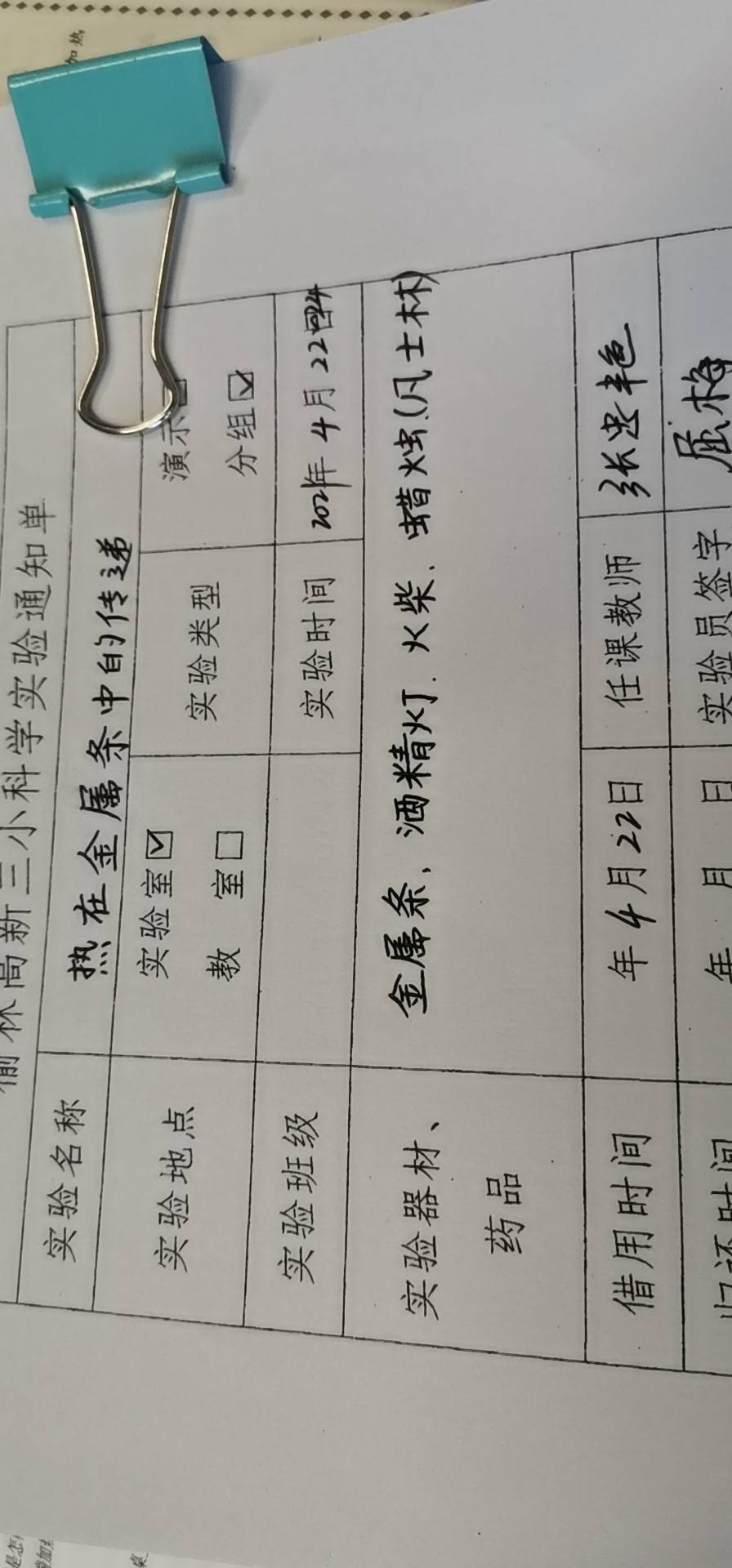 实验登记表