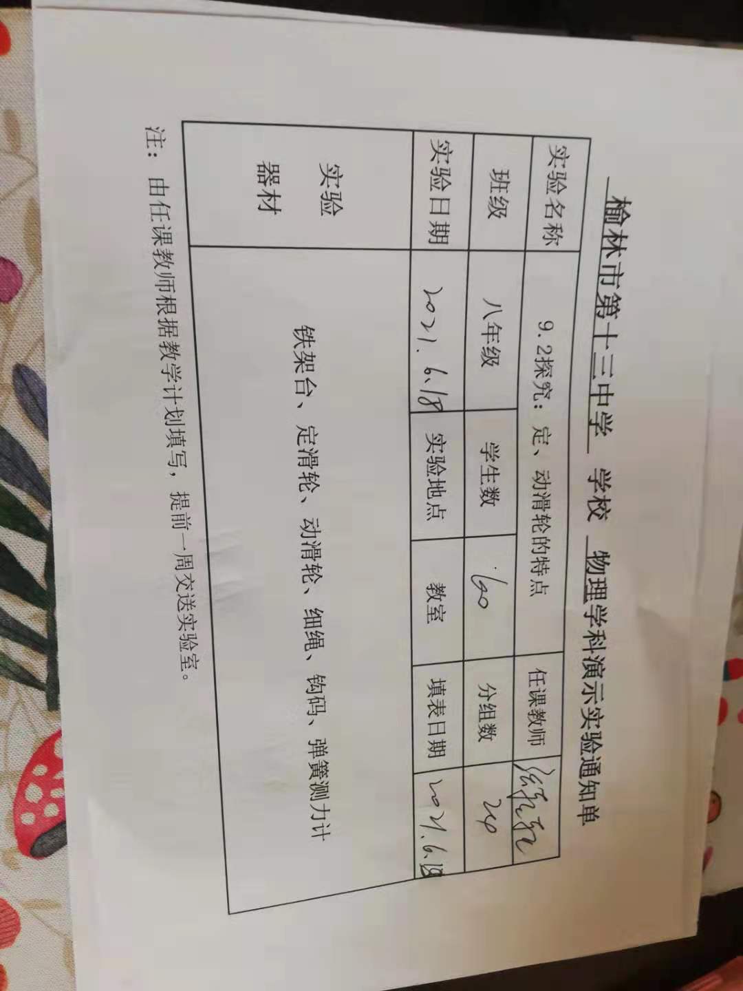 实验登记表