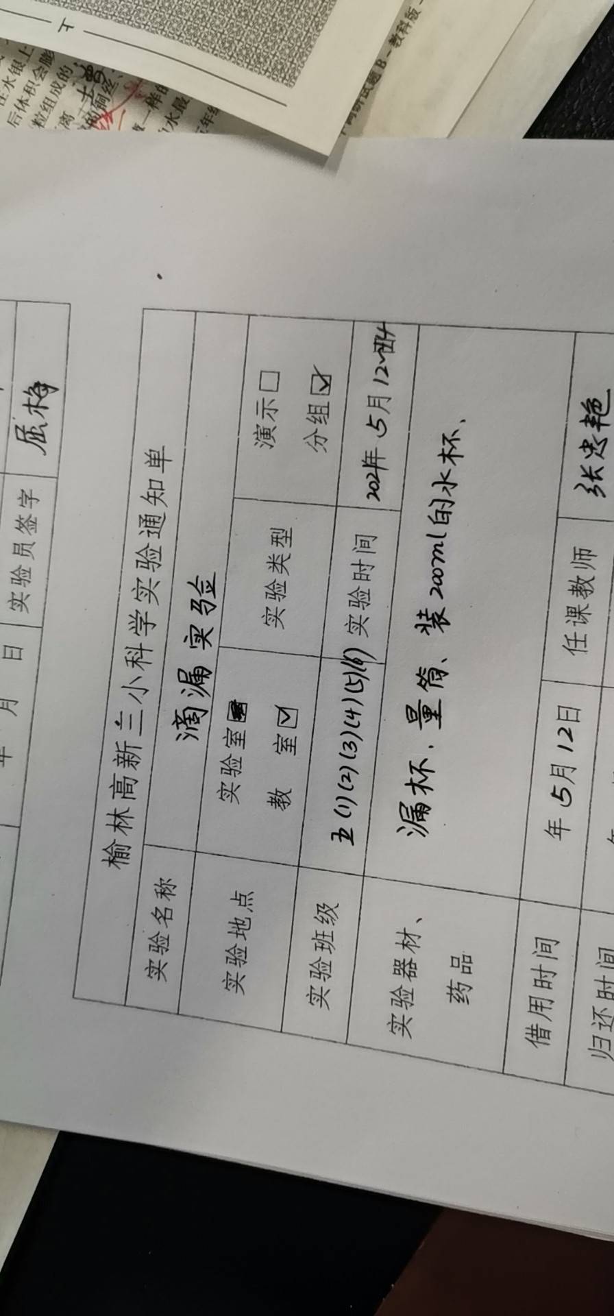实验登记表