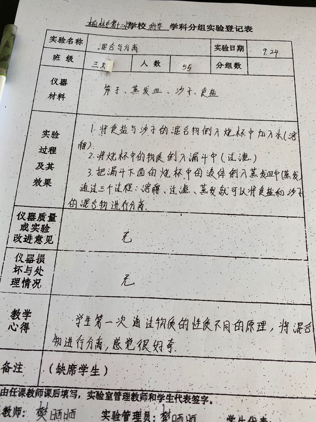 实验登记表