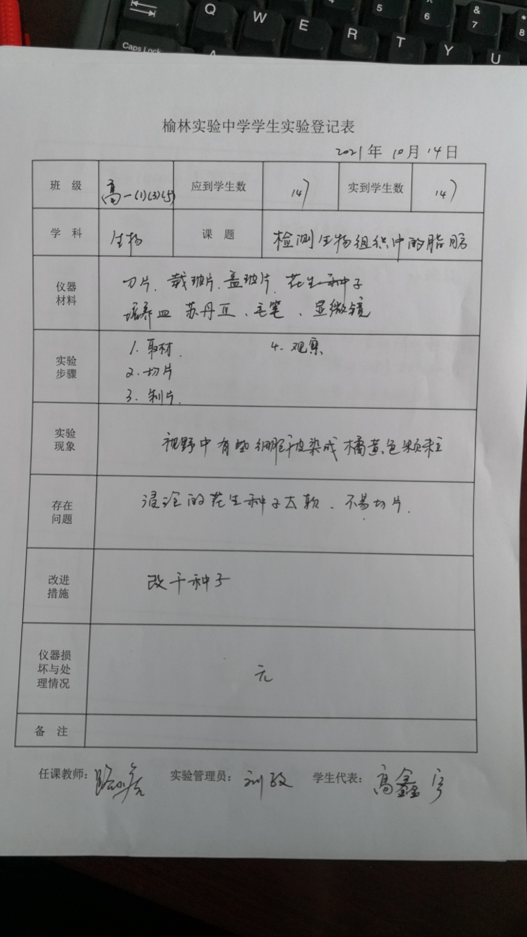 实验登记表