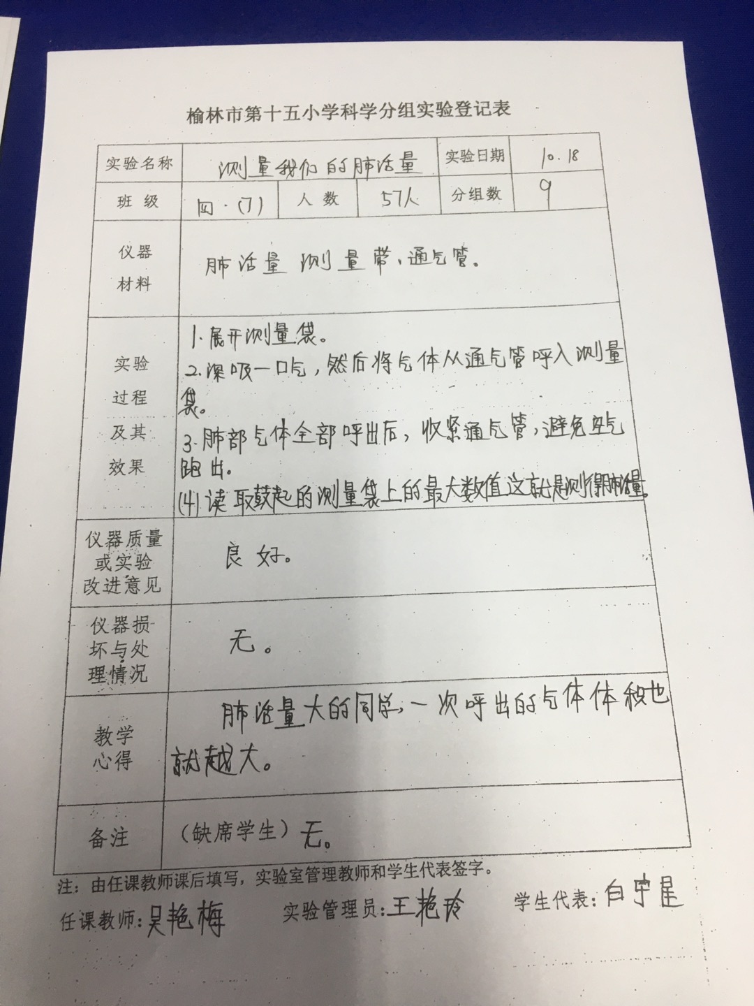 实验登记表