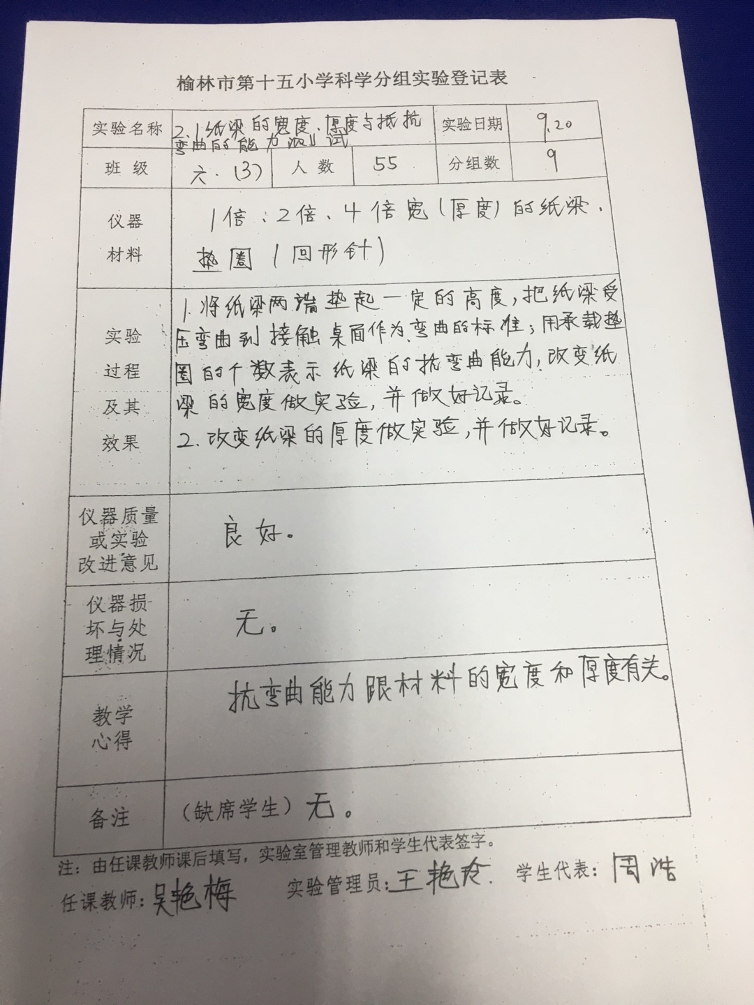 纸梁的宽度、厚度与抵抗弯曲的能力测试