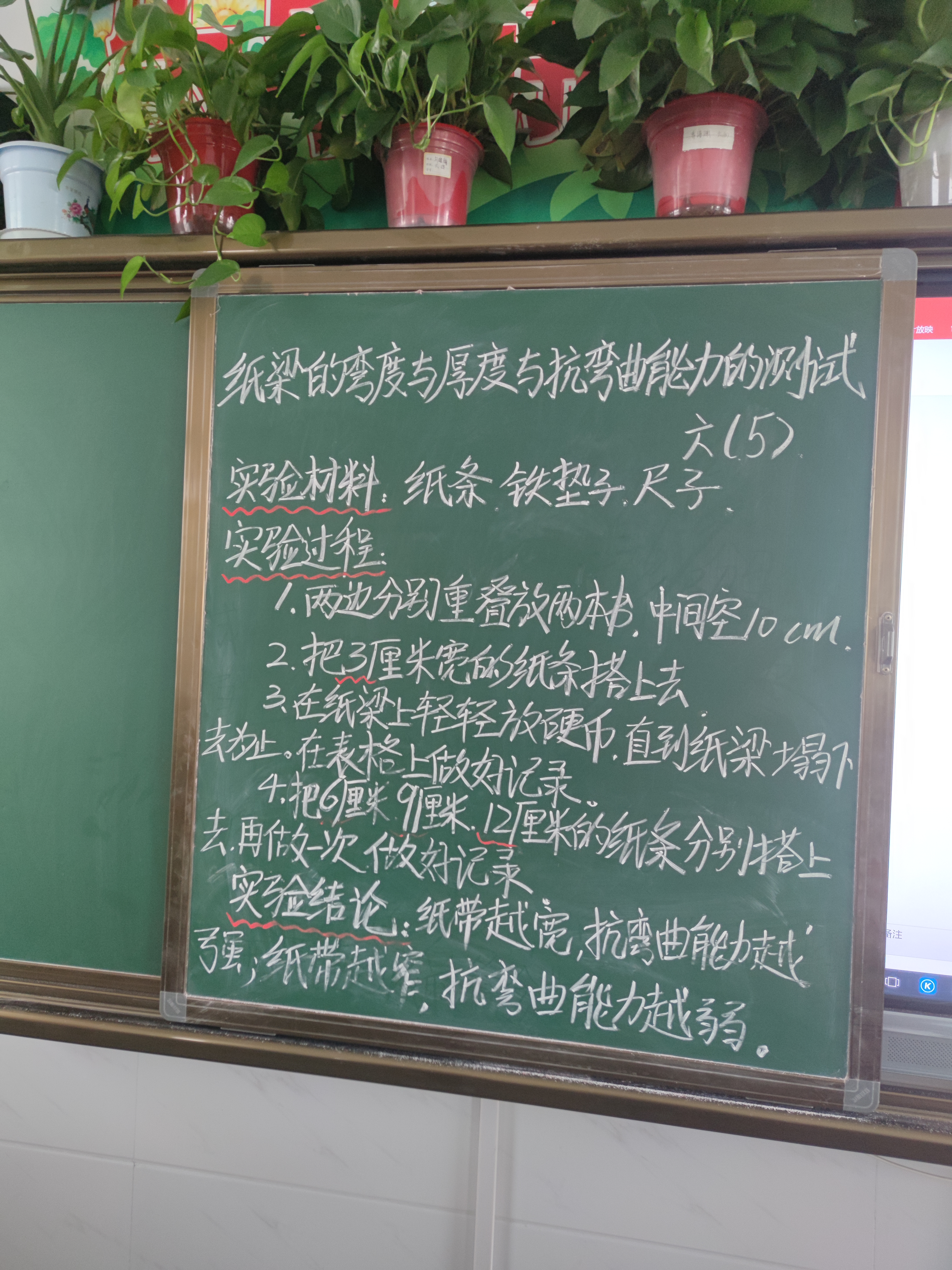纸梁的宽度、厚度与抵抗弯曲的能力测试
