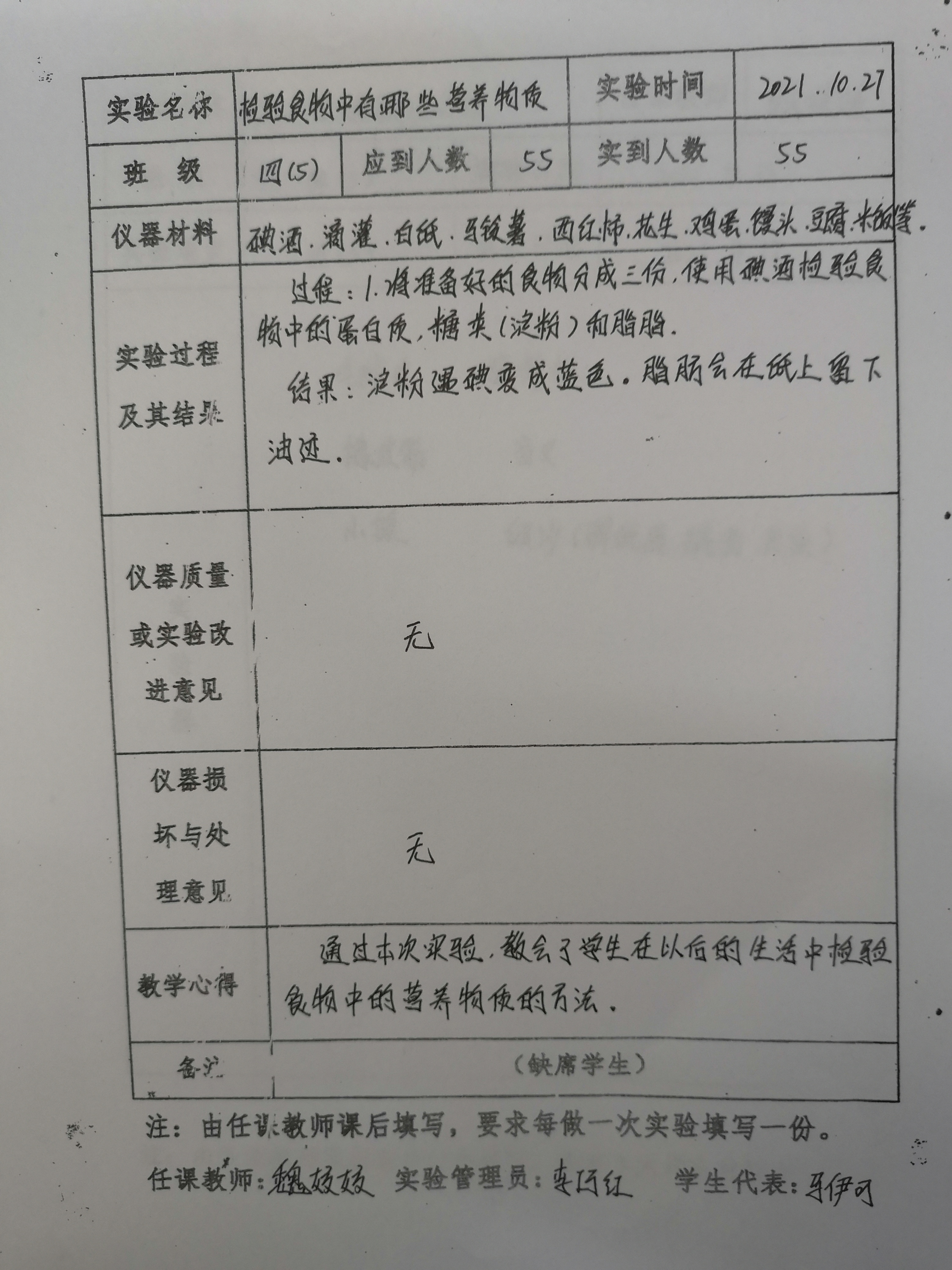 实验登记表