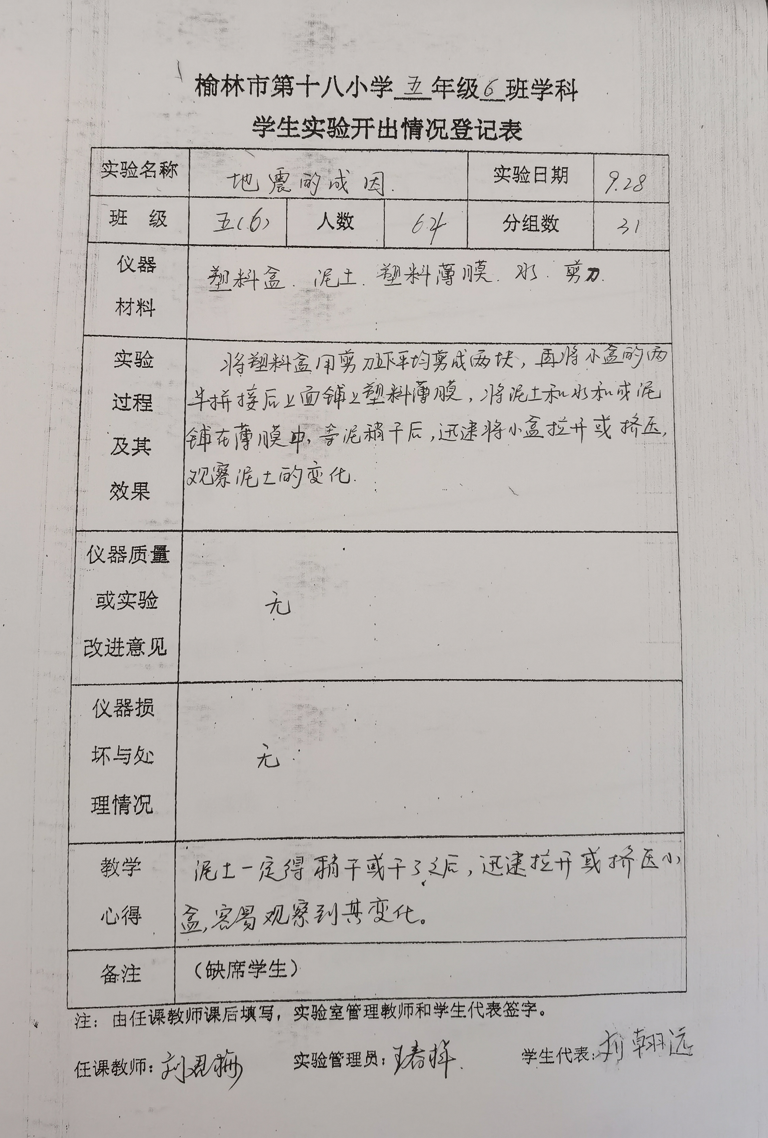 实验登记表
