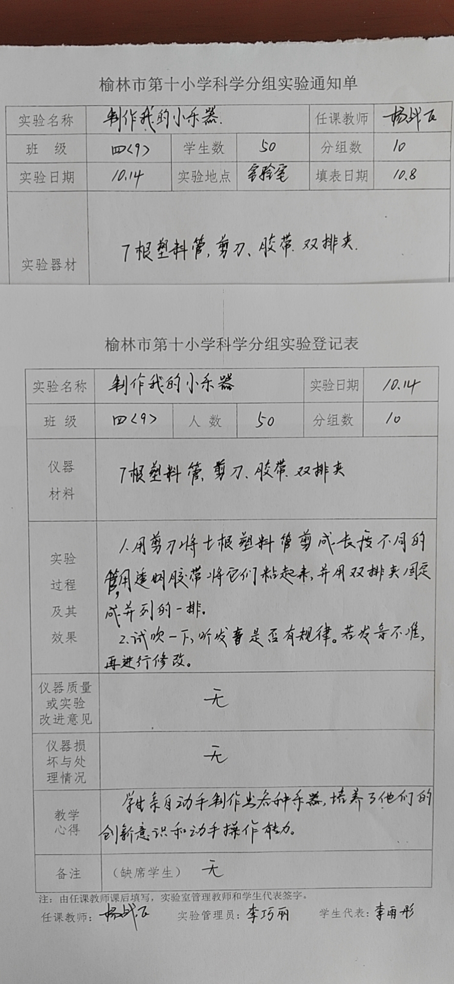 实验登记表