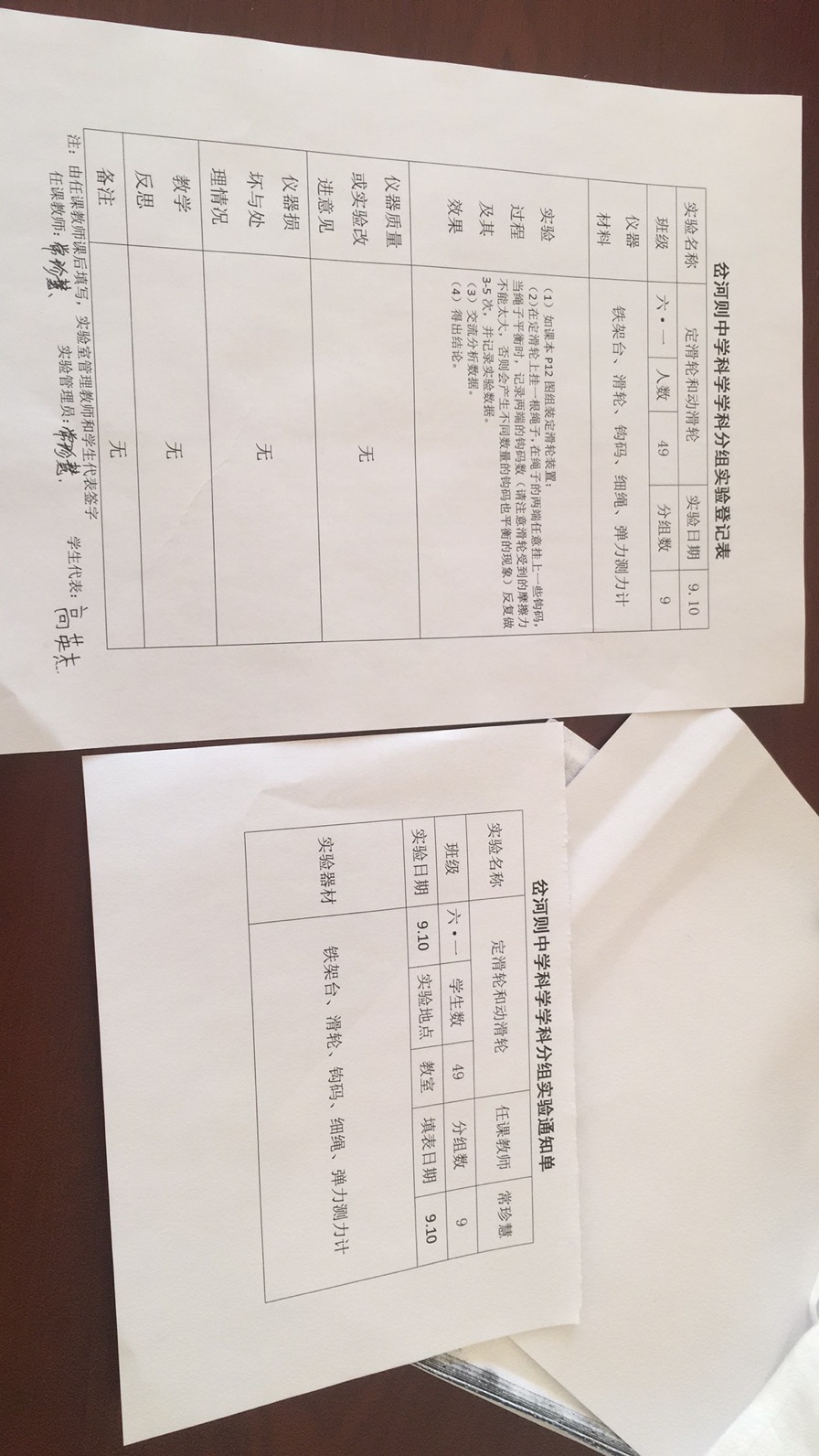 实验登记表