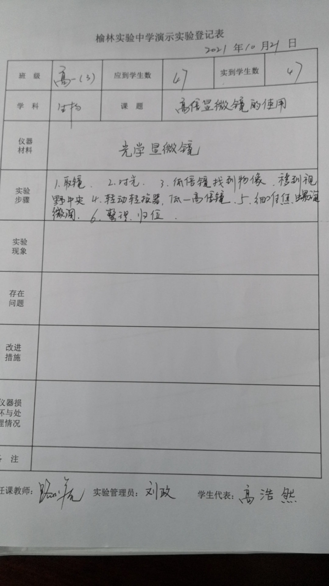 实验登记表
