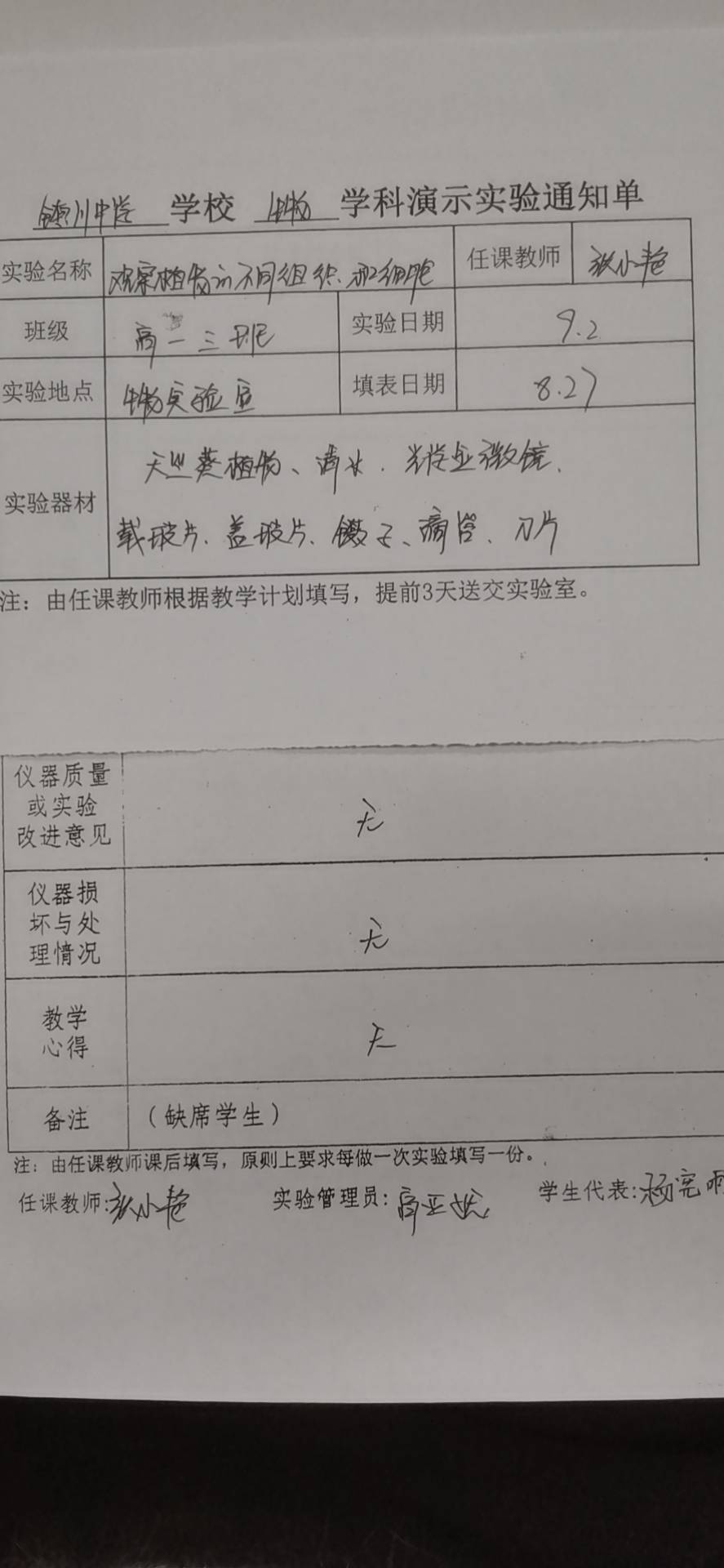 实验登记表