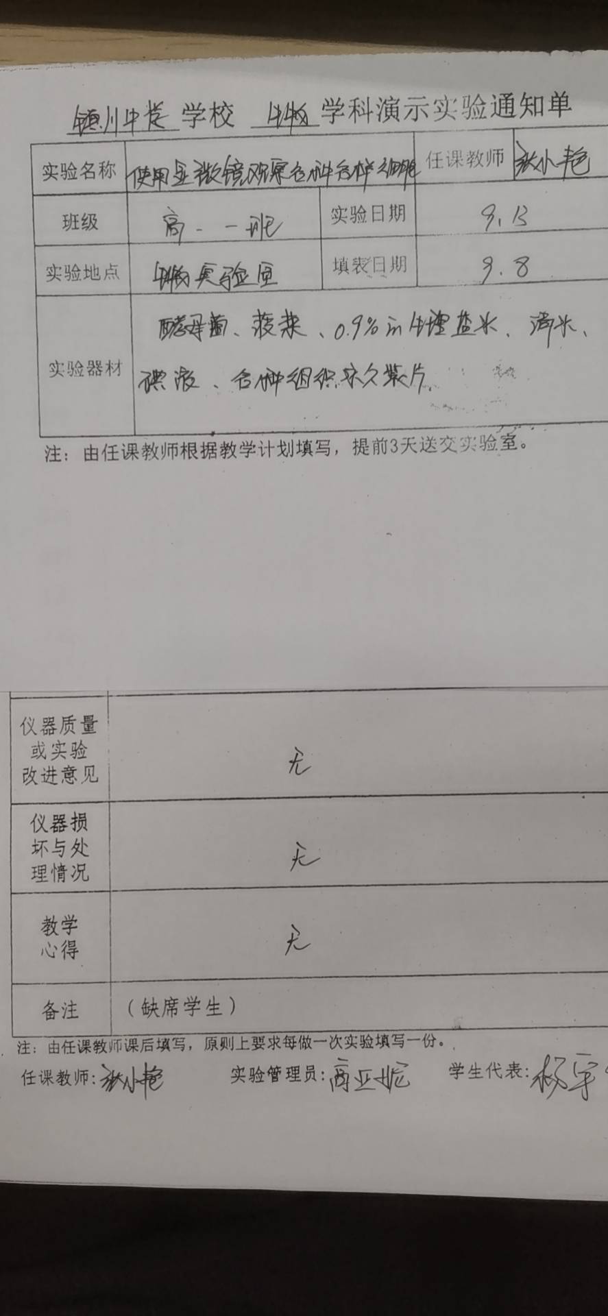 实验登记表