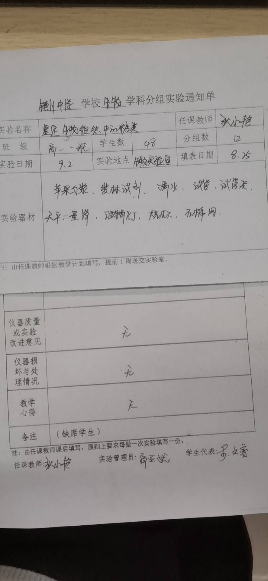 实验登记表