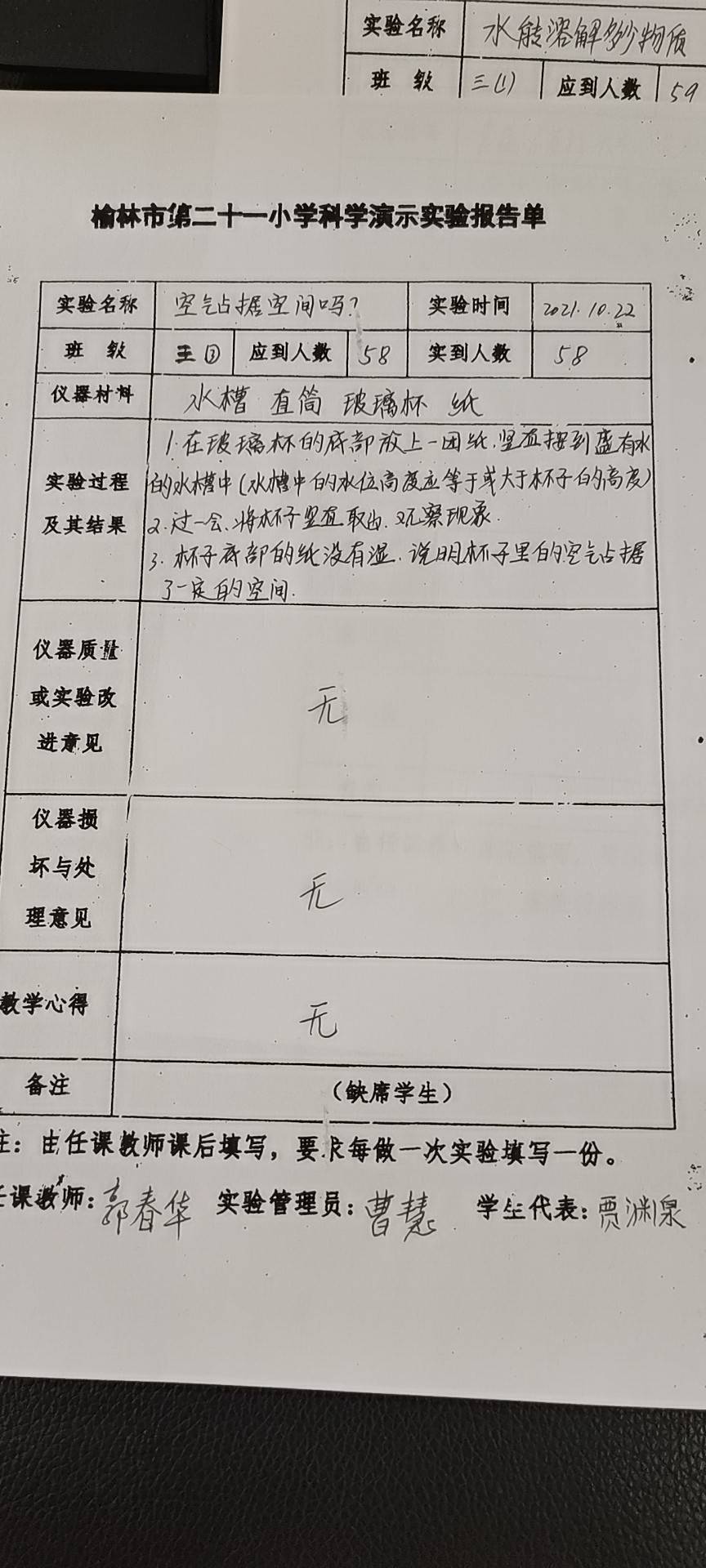 实验登记表