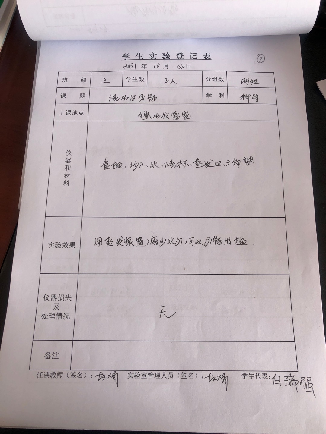 实验登记表