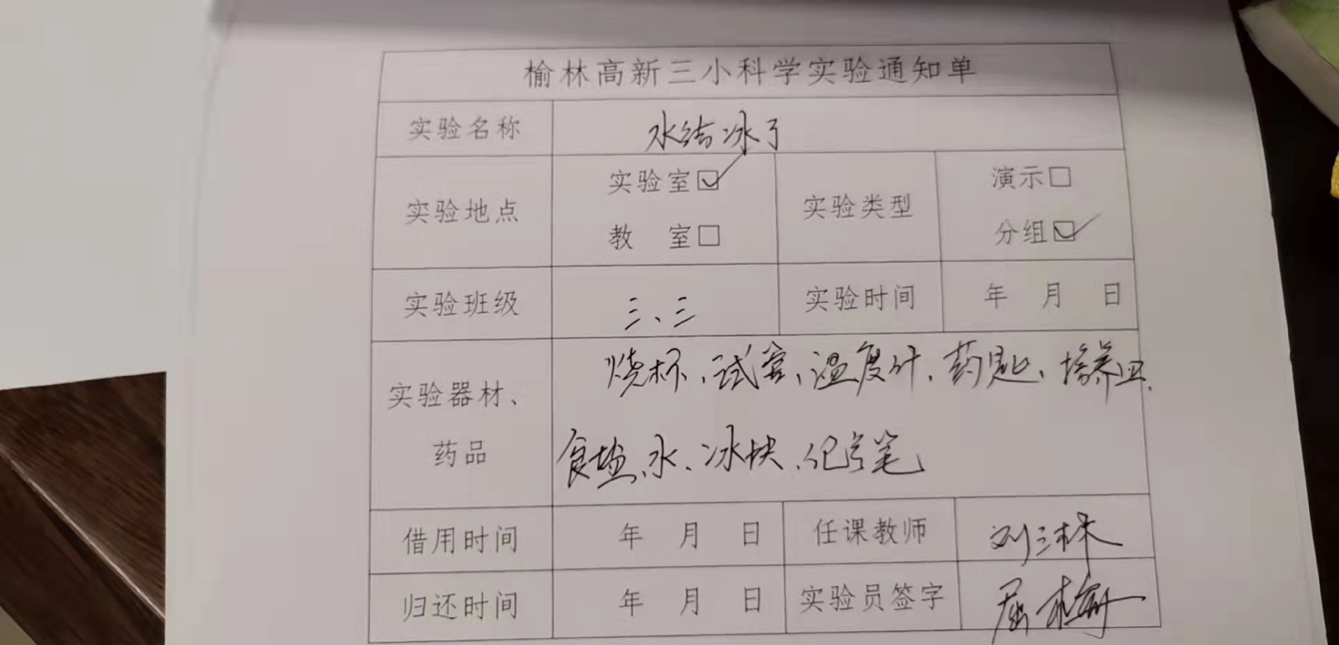 实验登记表
