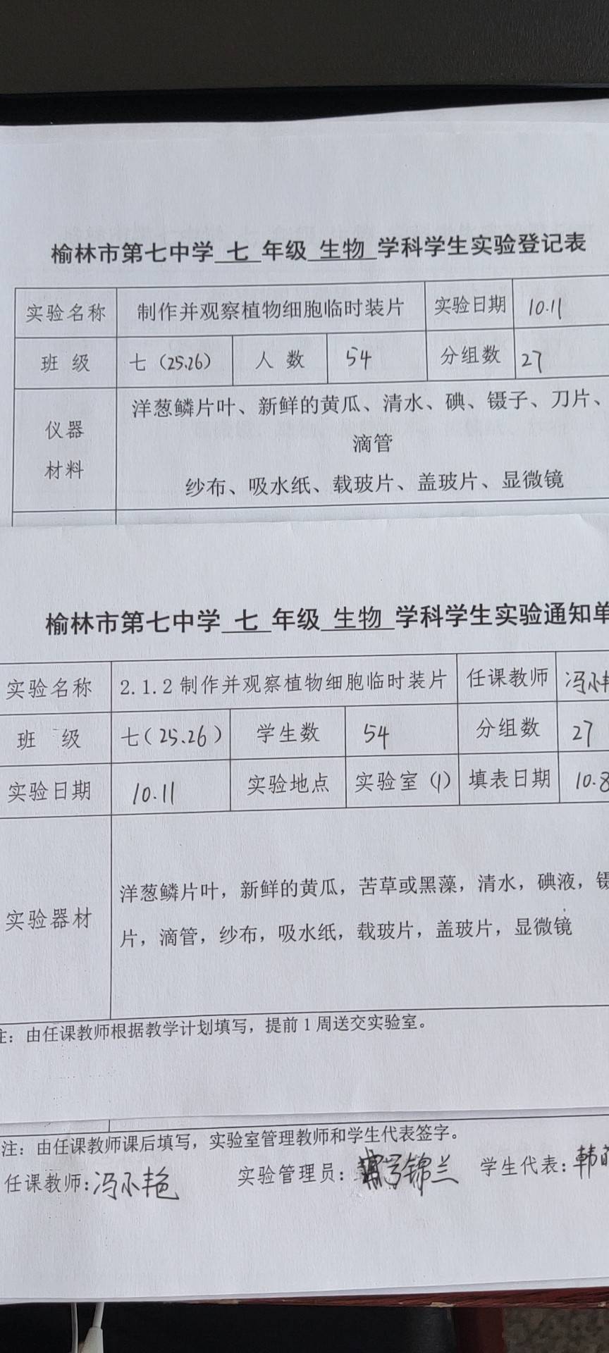 实验登记表