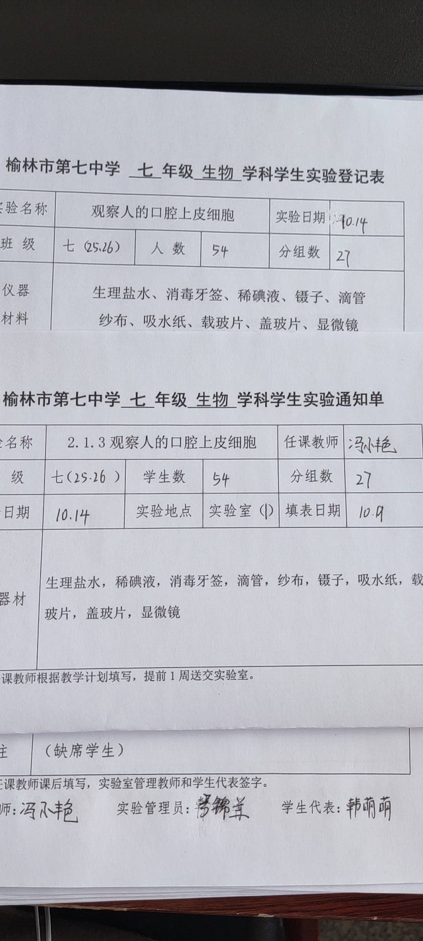 实验登记表