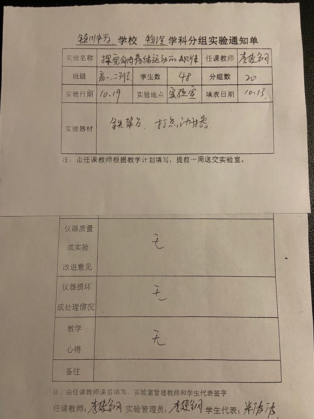 实验登记表