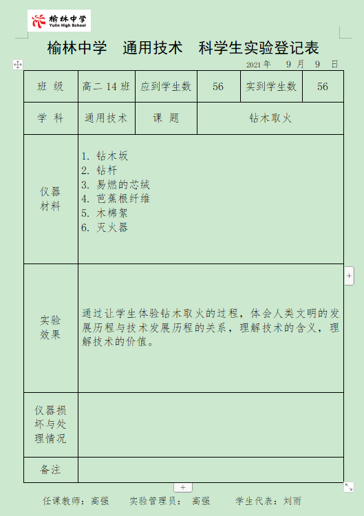 实验登记表