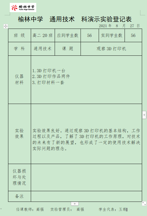 实验登记表