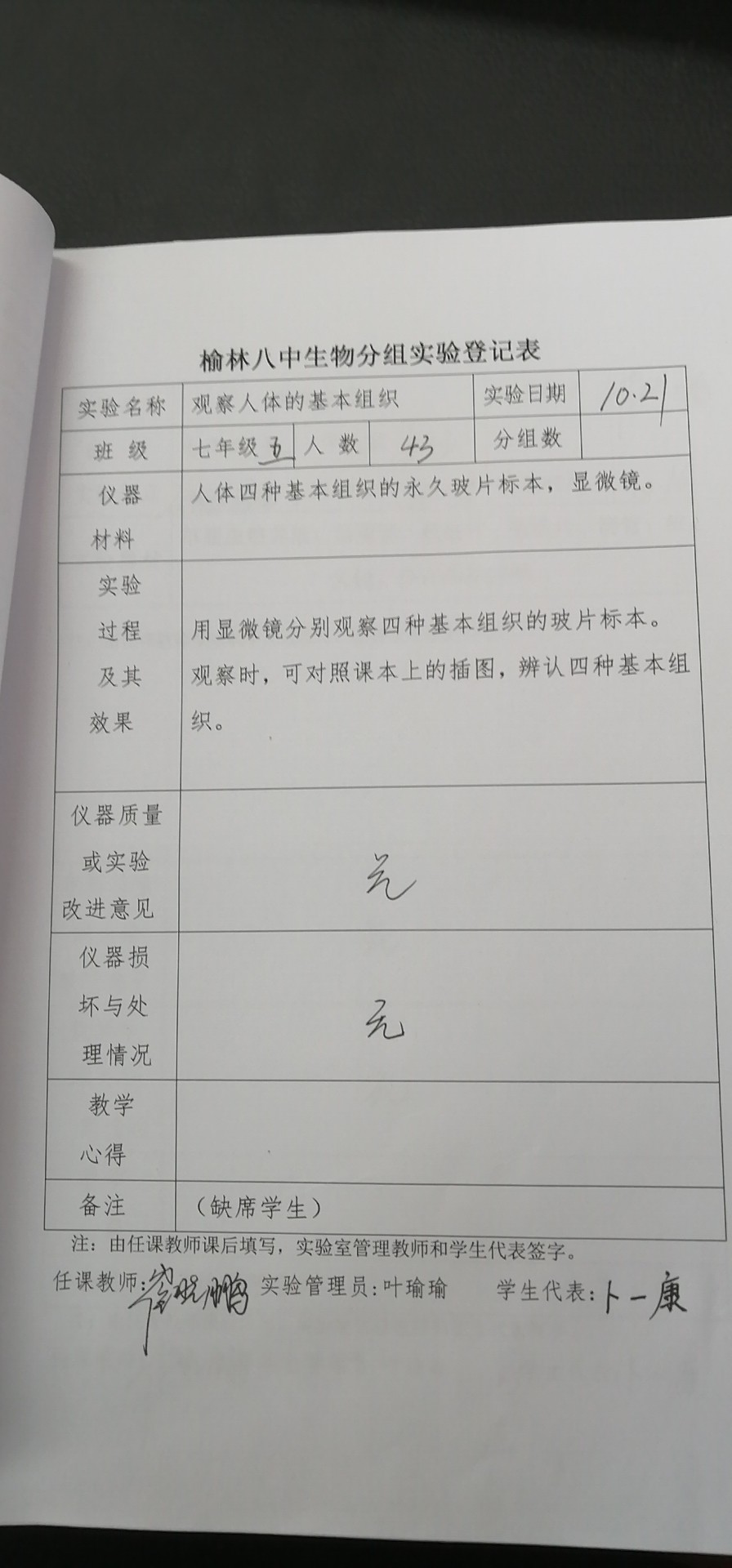 实验登记表