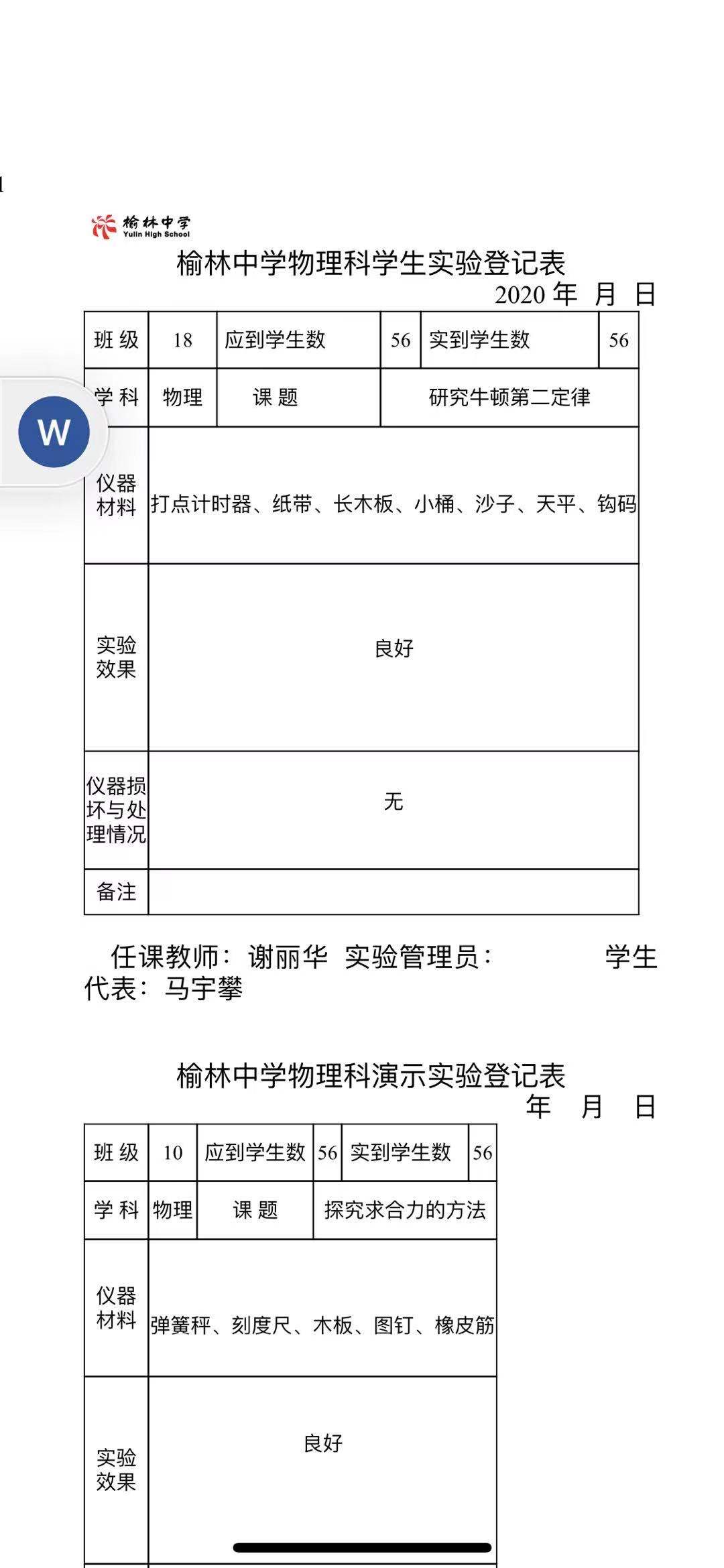 实验登记表
