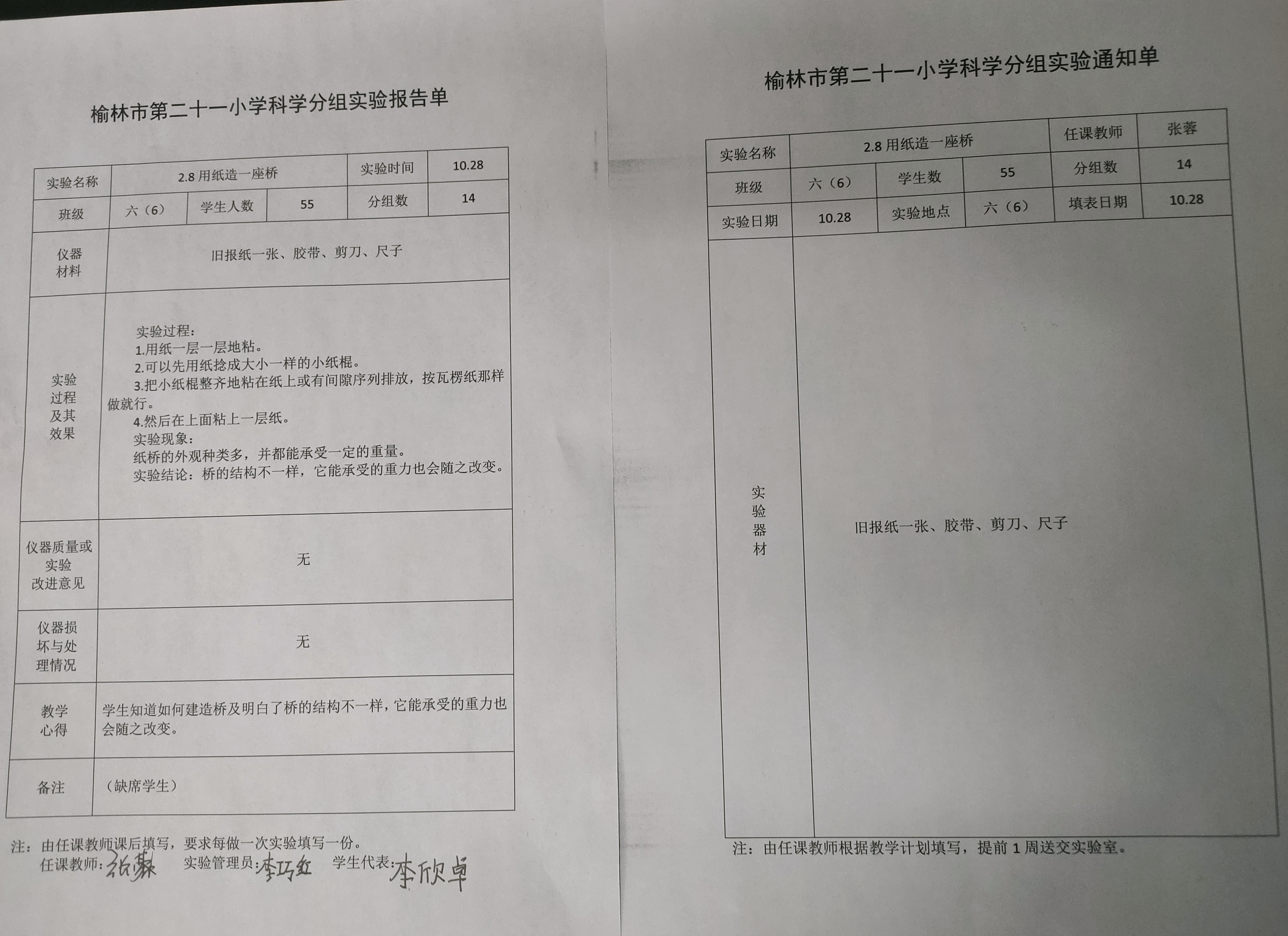 实验登记表