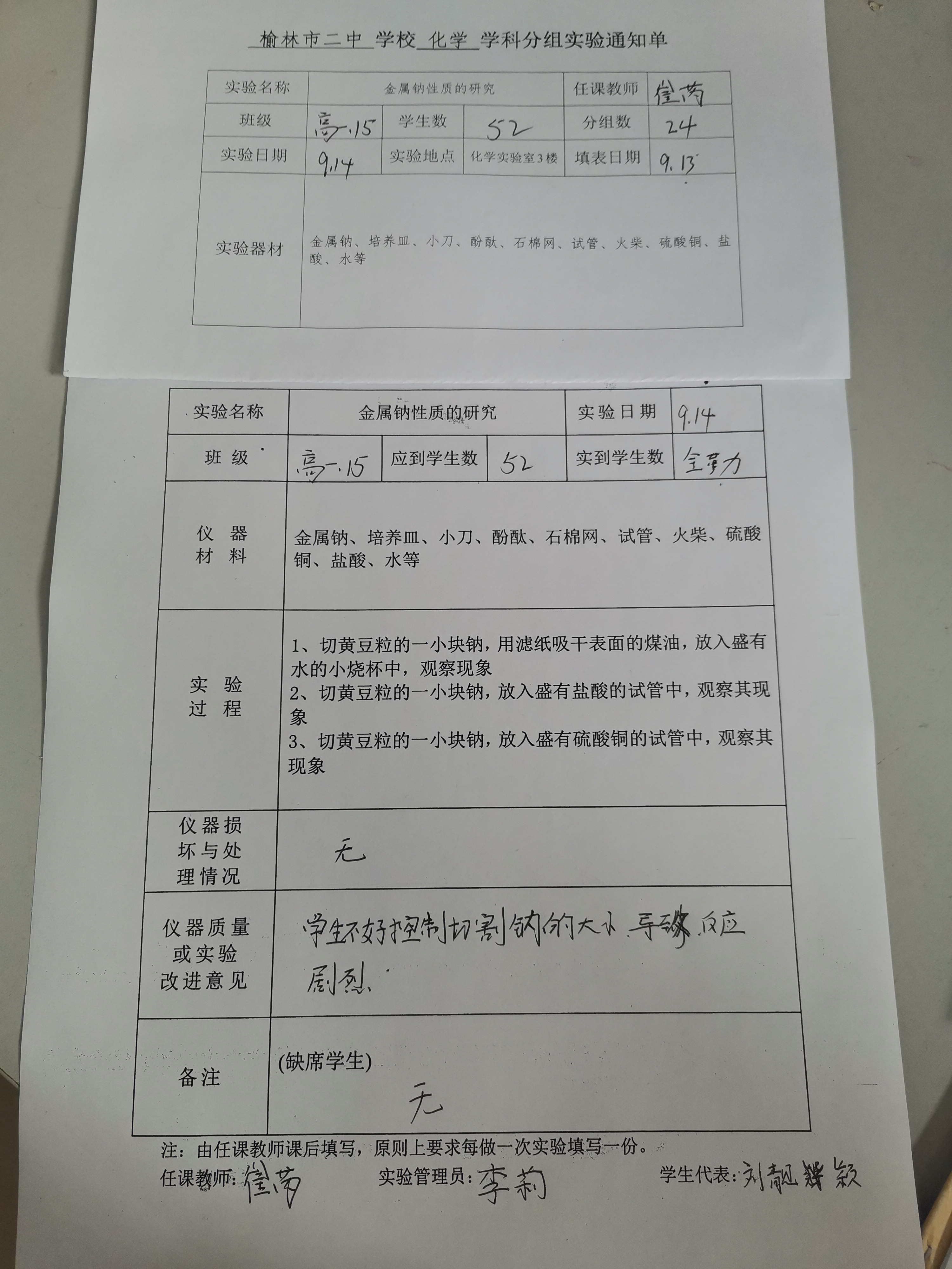 实验登记表