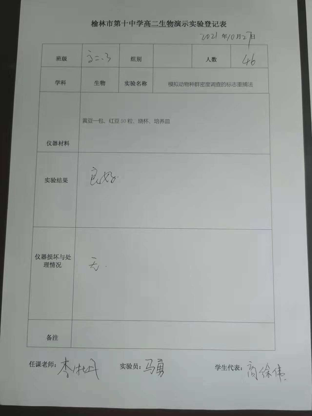 实验登记表
