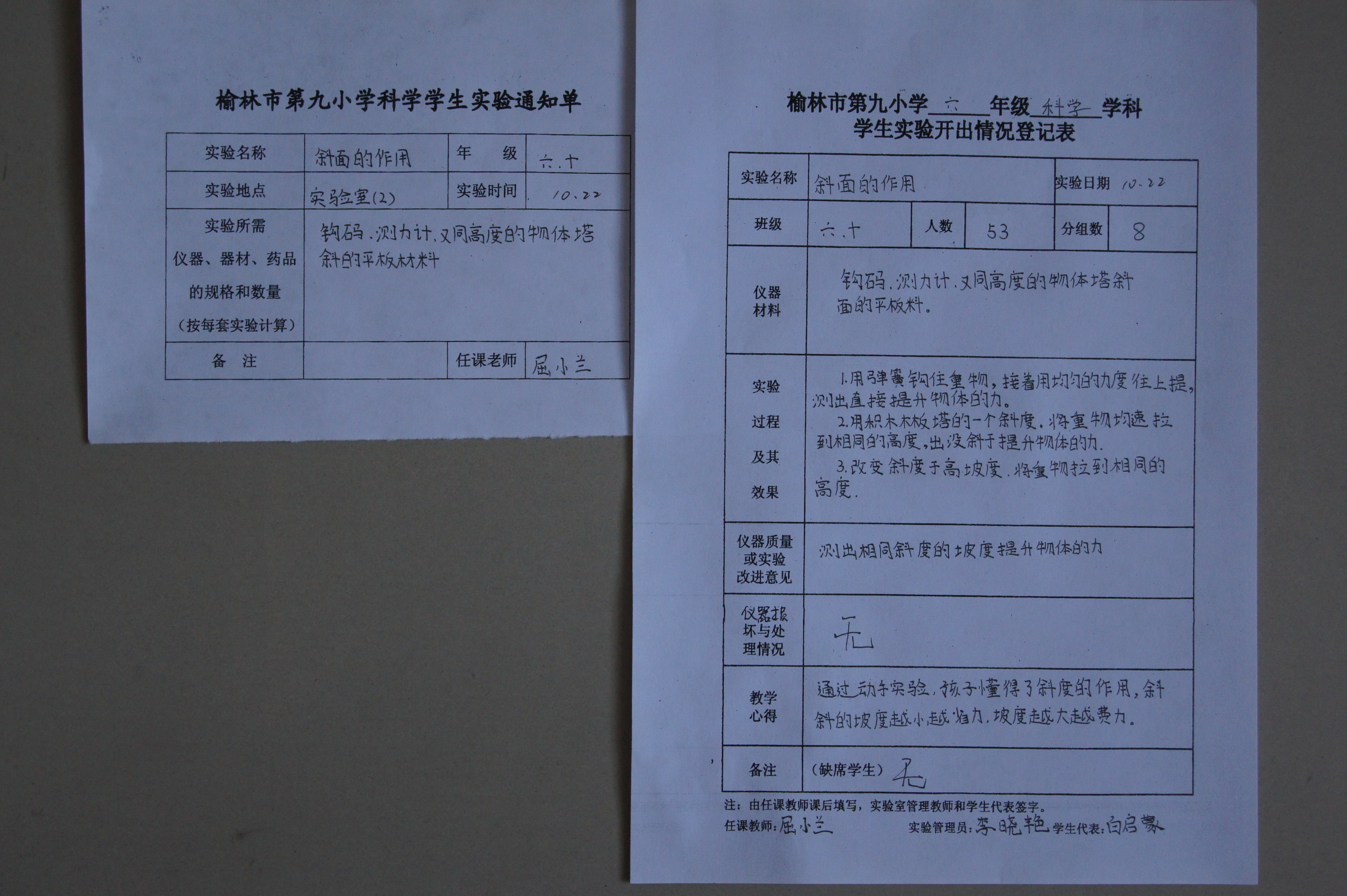 实验登记表