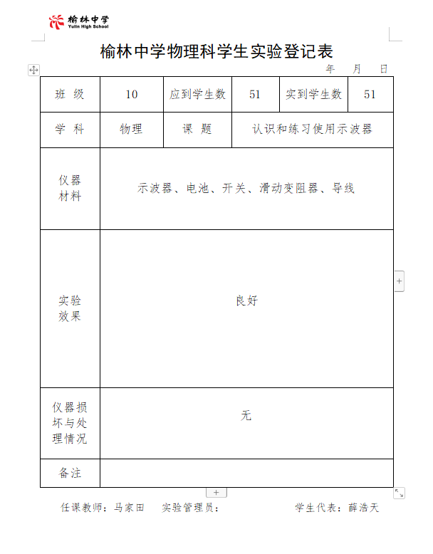 实验登记表