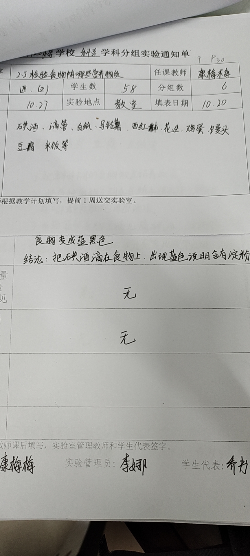 实验登记表