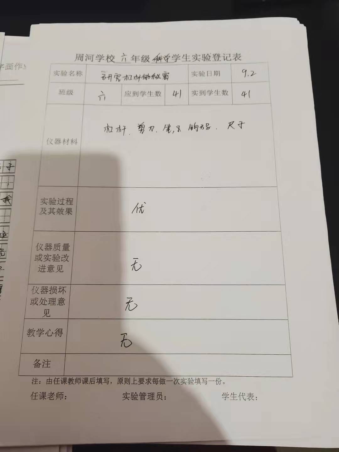实验登记表
