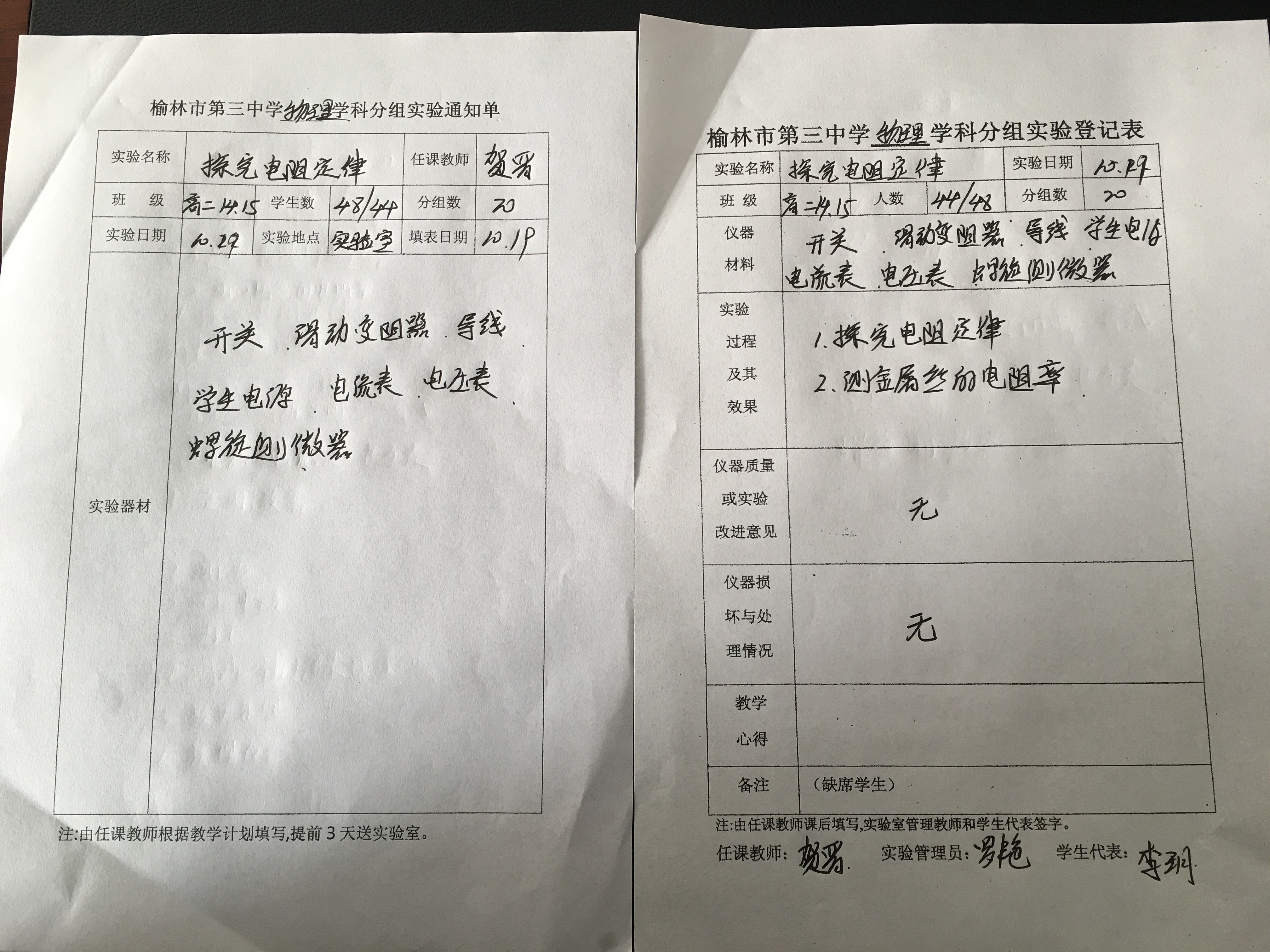 实验登记表