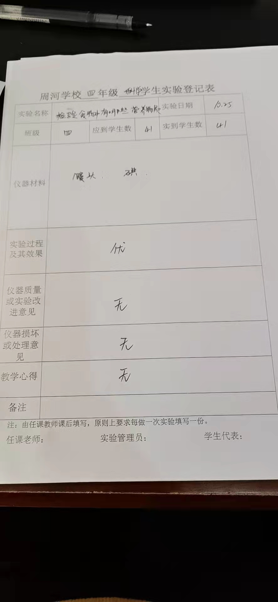实验登记表