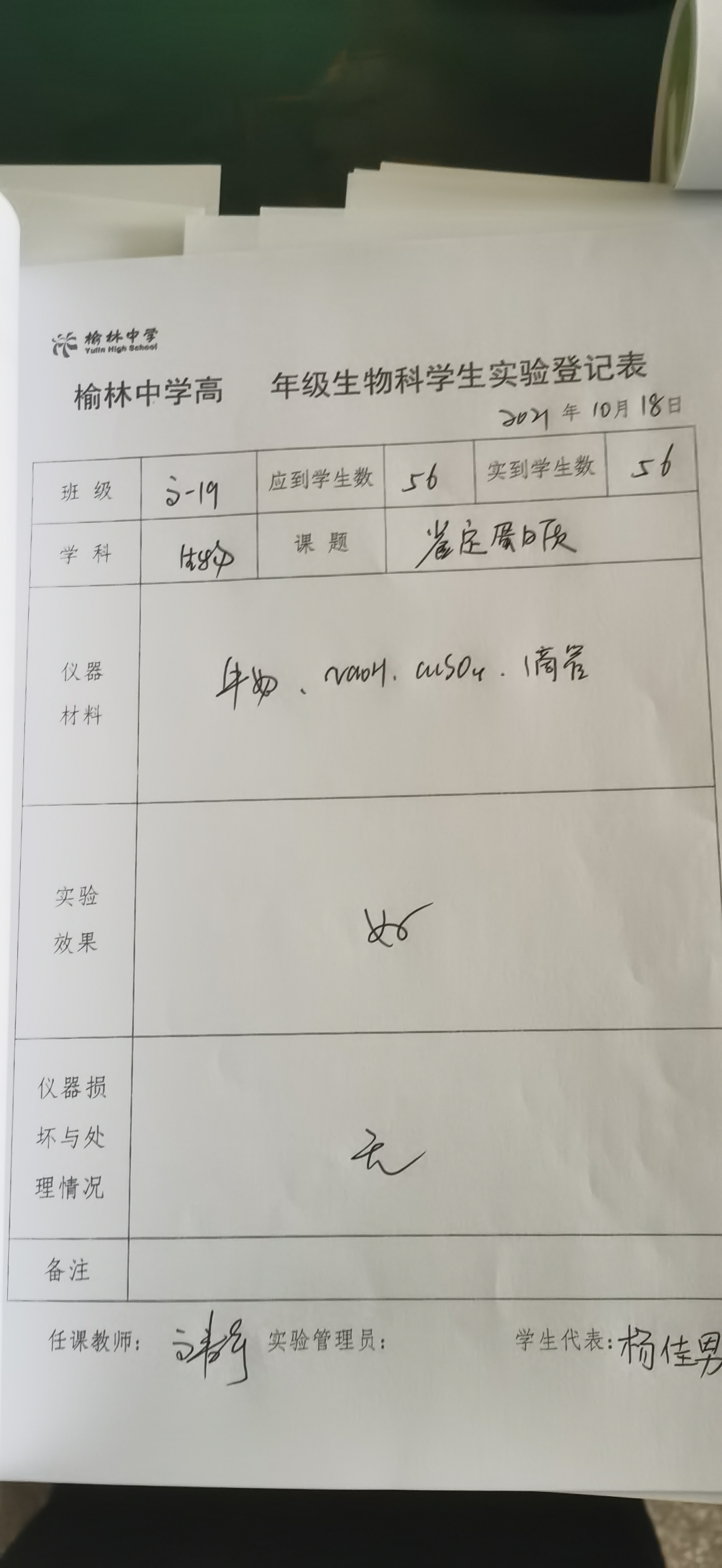 实验登记表