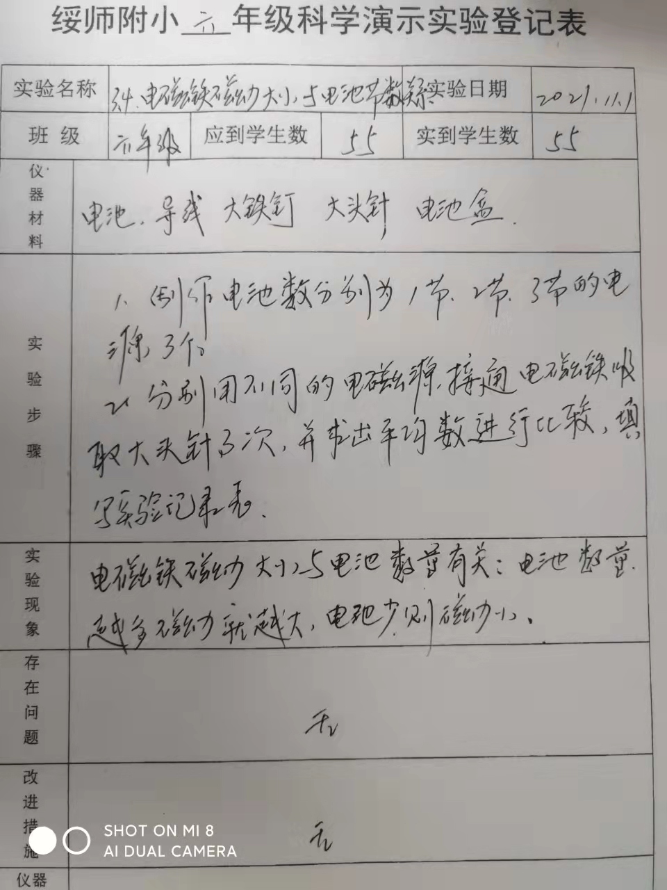 3.4电磁铁磁力大小与电池节数的关系